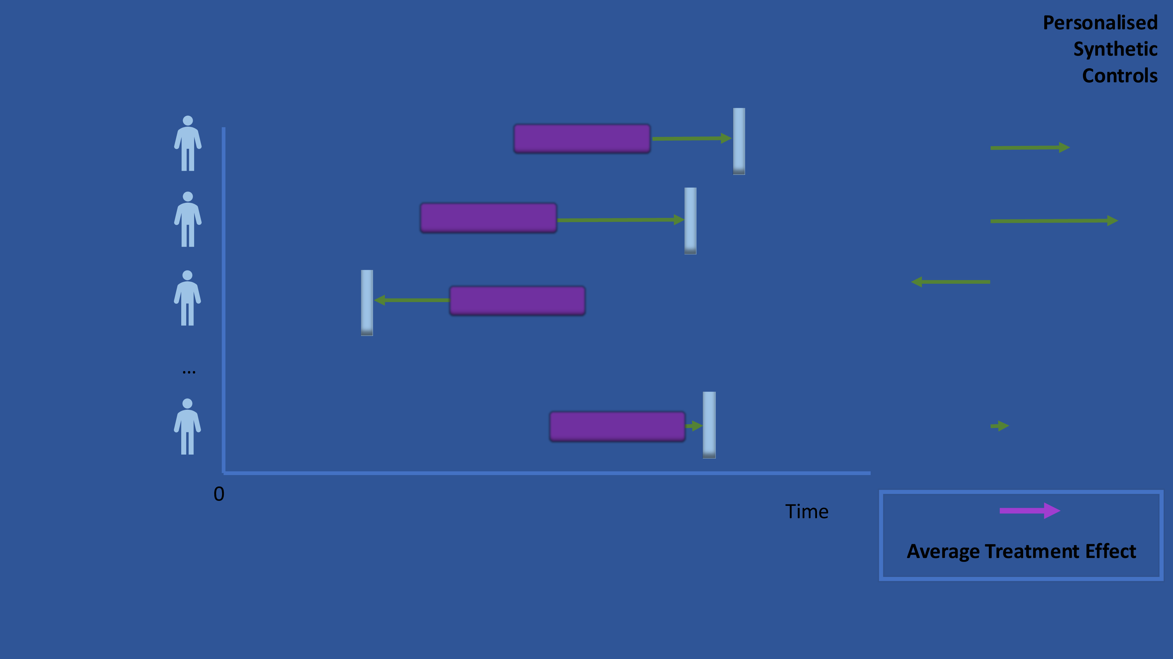 To estimate the average treatment effect over a group of patients, we can average over all individual effects.